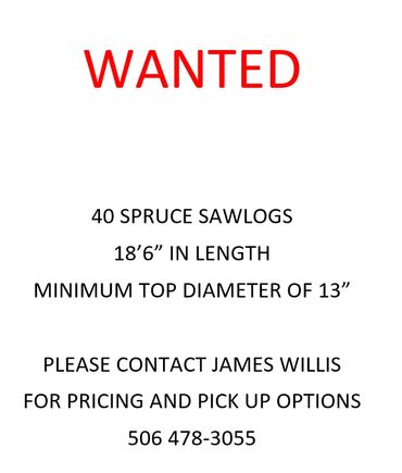 Hanson Sawmill is looking for 100 – 200 cords of 8’ Cedar 4" top straight and sound. Their rate is $178.97/cord (after levy.)