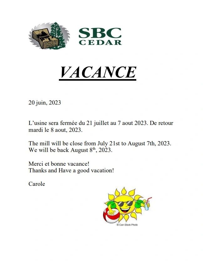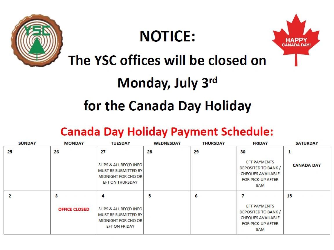 Please be advised that this coming Saturday, July 8th, our Sussex Chip Plant and Yard will be closed for deliveries between 6:00 am and 6:00 pm.